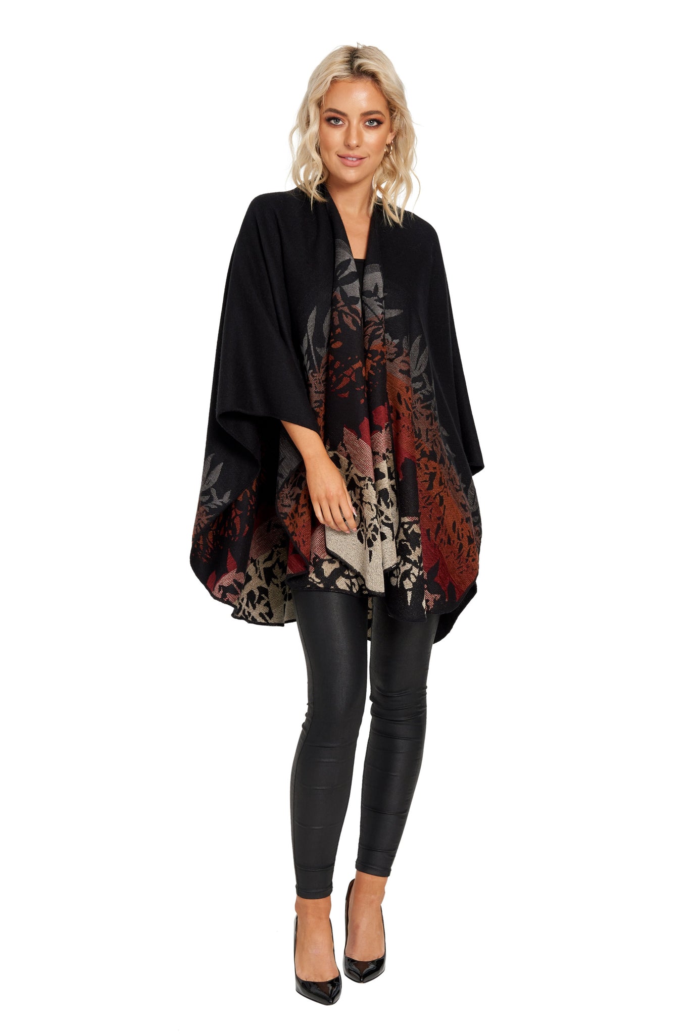 Ruana/Shawl/Wrap in 100% Acrylic Velour with Chenille Yarn Sylvan Motif.